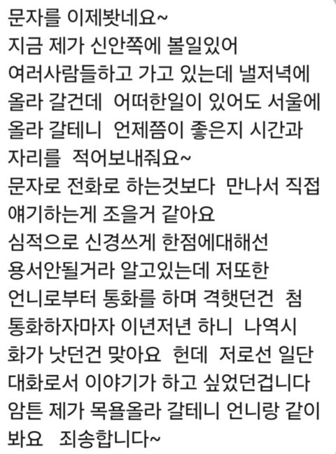 저 메세지는 상황모면용 메세지였으며