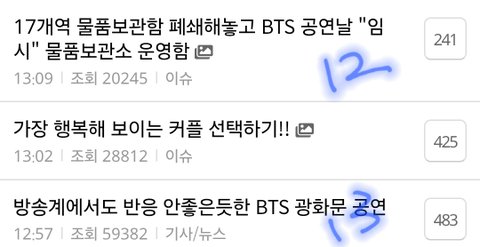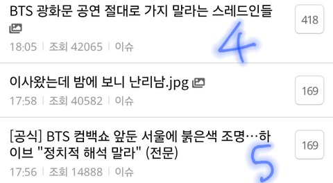 저렇게 해야 저기 있는 아미들이 눈치보고 사리느라 영업글을 못 올릴 거 아냐 방탄 컴백날까지 홍보글 좋은글은 절대 못 쓰게 하려고 쉼없이 까질 할 거임