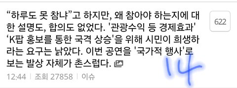 저런다고 방탄이 망하지는 않을텐데 왜저렇게 쓸데없는 일에 에너지를 쏟아붓는건지 이해가 안되네 ㅋㅋㅋㅋ 저 사이트 이미지만 더 안좋아지지 현실에서 더쿠하는 사람있으면 칼손절각