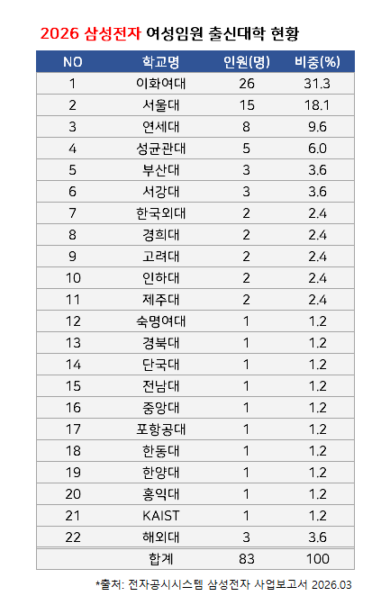 삼성전자 임원중에 여자는 어느 대학 출신들이 있을까?