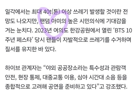 여러모로 말이 많은 행사라 팬들이 진짜 잘해야 함 다들 질서있고 안전하게 공연 보자