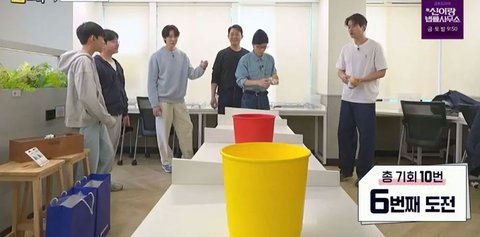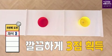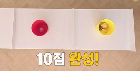 (빨간 바구니에 넣으면 1점 노란 바구니에 넣으면 3점)