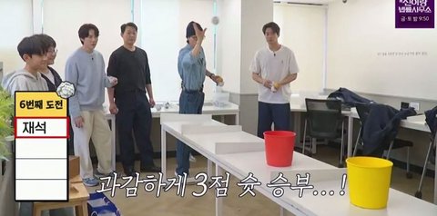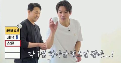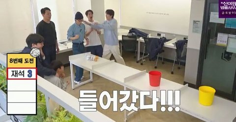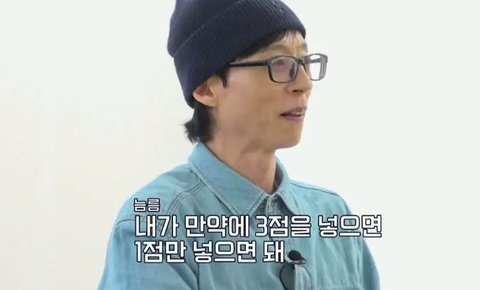 일단 첫번째로 나선 유재석 과감하게 3점 따냄 올