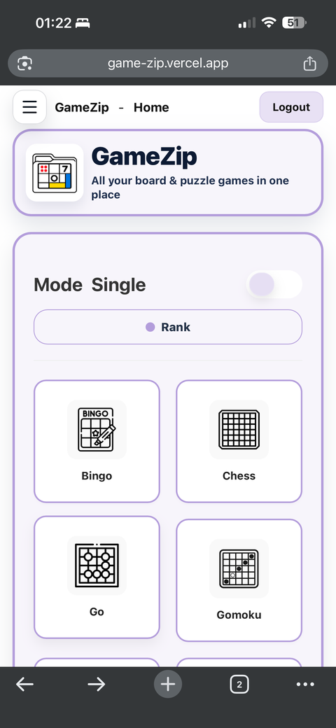 게임집이라는 이름으로 만들었고 게임 체스랑 빙고 오목 바둑 등등 있어!!