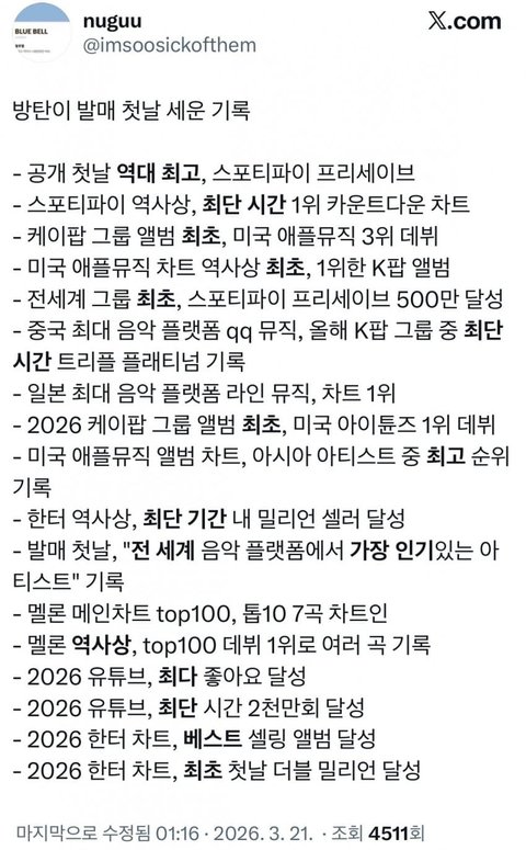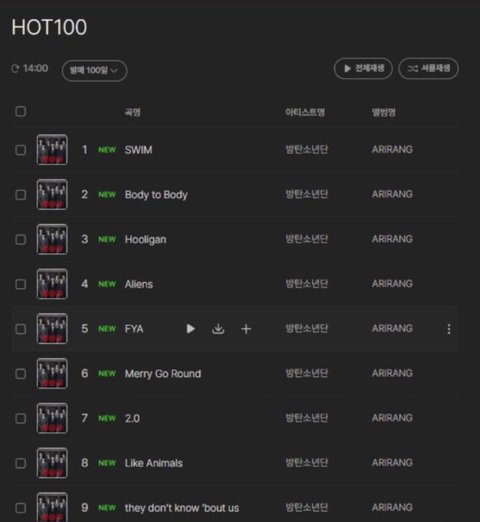BTS '아리랑', 美 '빌보드 200' 3주 연속 1위…K팝 최초 기록