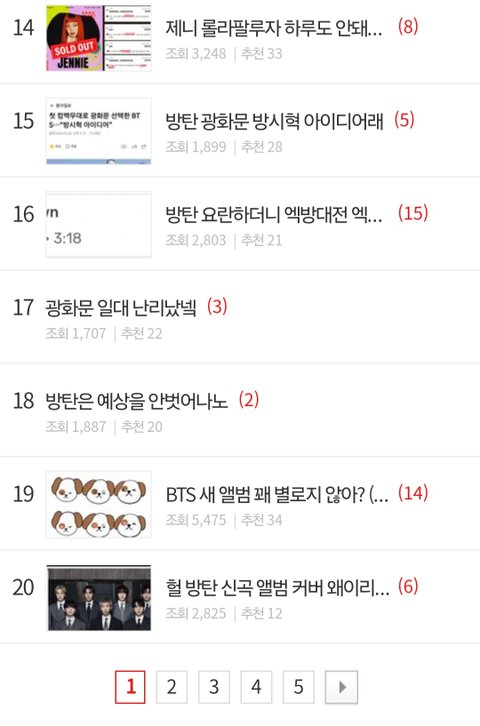 연예톡 1위부터 20위까지 다 방탄임