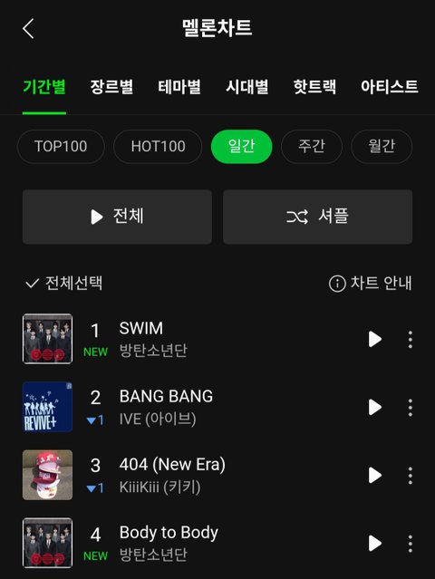 타이틀 SWIM 하루만에 일간 1위 먹은거 개간지임 바디 투 바디도 심상치 않음