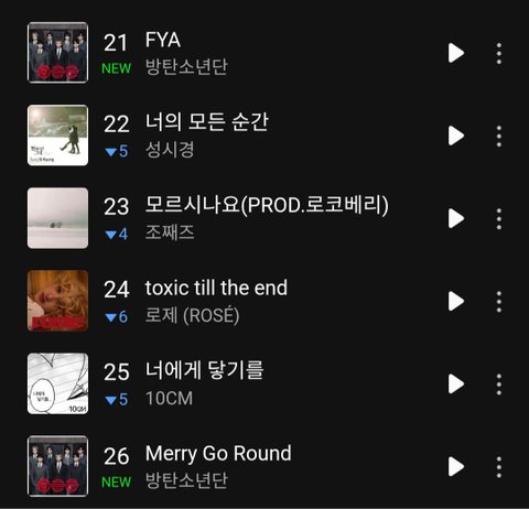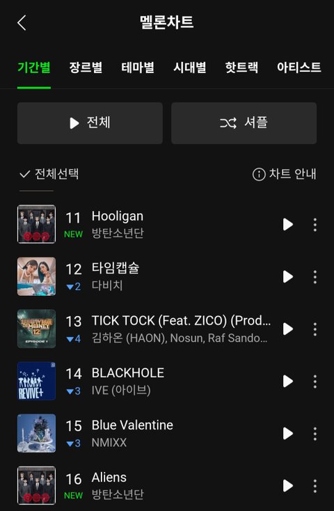 방탄 일간 차트인 순위 봐봐