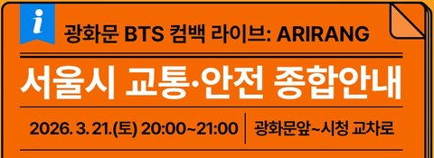 또한, 이번 BTS 광화문 공연 교통통제는 공연 전후 무대 설치 및 철거 기간까지 포함되어 며칠간 지속될 예정입니다. BTS 광화문 공연 교통통제 기간 동안 종로와 을지로 등 인근 우회 도로의 극심한 정체가 예상되므로, 가급적 대중교통을 이용하세요.
