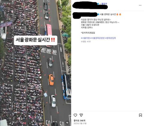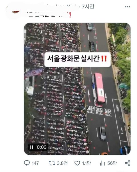 석렬이탄핵집회 영상을 마치 광화문인파인것처럼 주작한글에 맘찍이 1만ㅜㅜ
