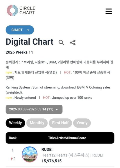 K차트 애플 뮤직 1위 스포티파이 1위 유튜브 뮤직 1위 하츠투하츠 하투하 루드