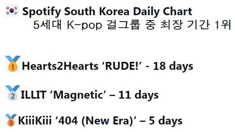 K차트 스포티파이 5세대 중 최장 기간 1위 달성한 하츠투하츠 하투하 루드