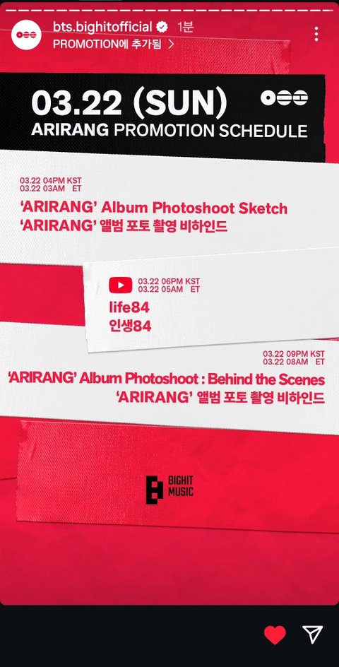 내일 아미 스케줄 올라옴