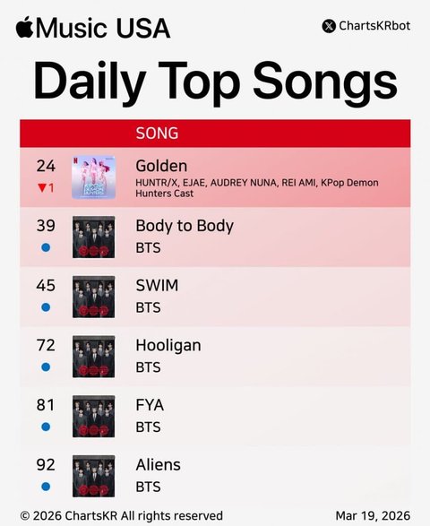 방탄 항상 스포티만높고 애플뮤직은 낮았는데