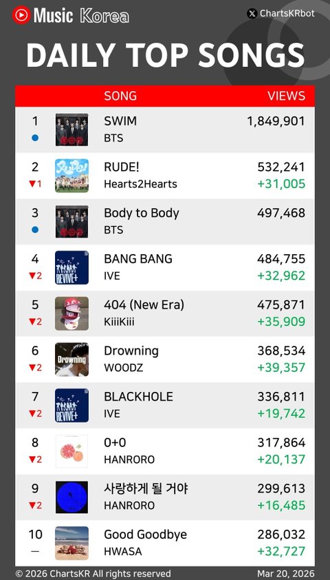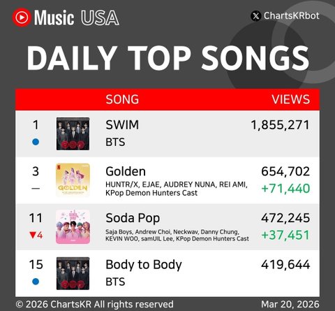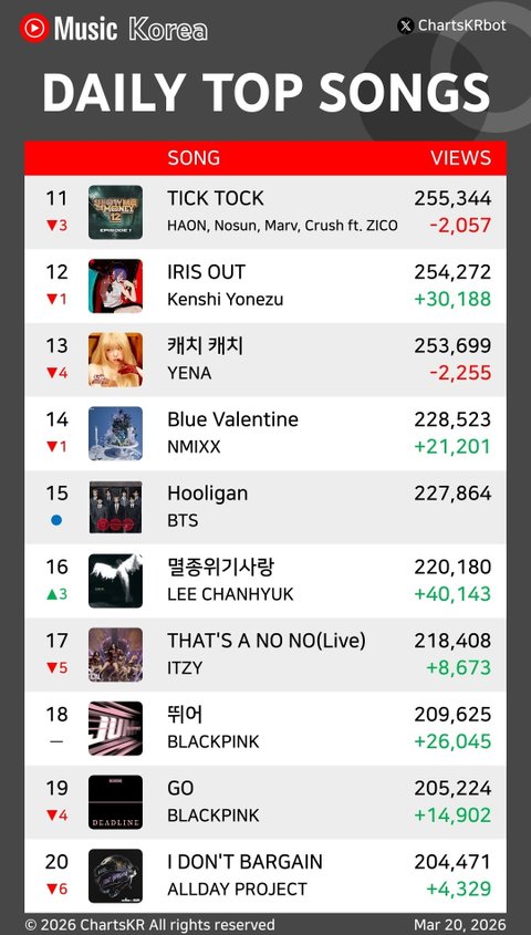 유튭뮤직 차트 업뎃