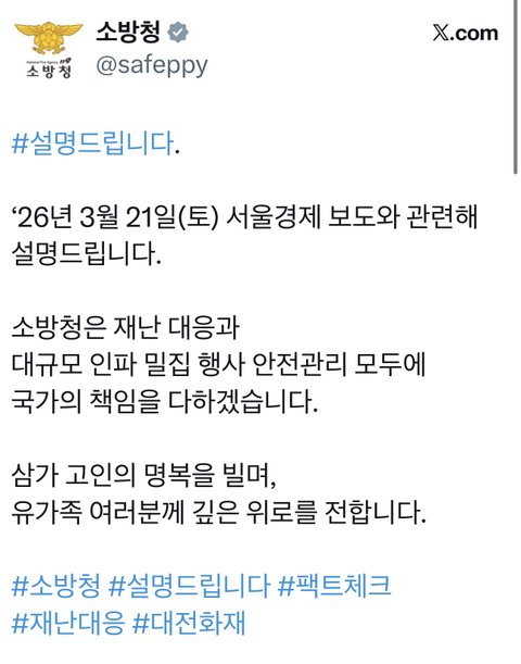 소방청에서 오보가 많으니 팩트로 확인시켜줌