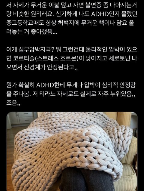 남친이 위에서 안아주거나 막 무거운 이불 올려놓거나 그런거 좋아하는데 이게 adhd여서 그런거라니