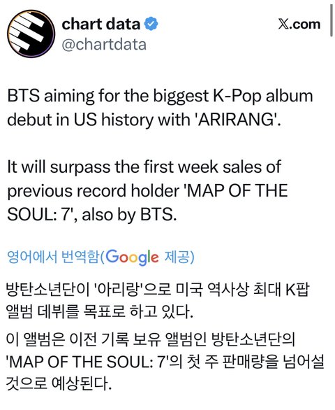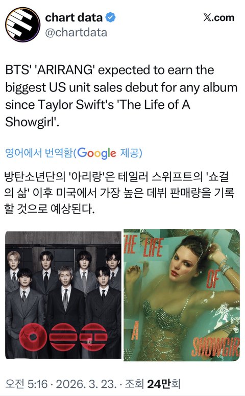 빌보드200 차트 1위예측인듯