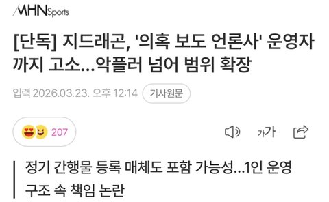 ㅉㅉ 기레기들 요즘 주어 불문 조회수 장사하려고 어그로 끄는거 넘 심함 꼭 처벌 받길