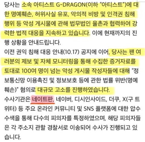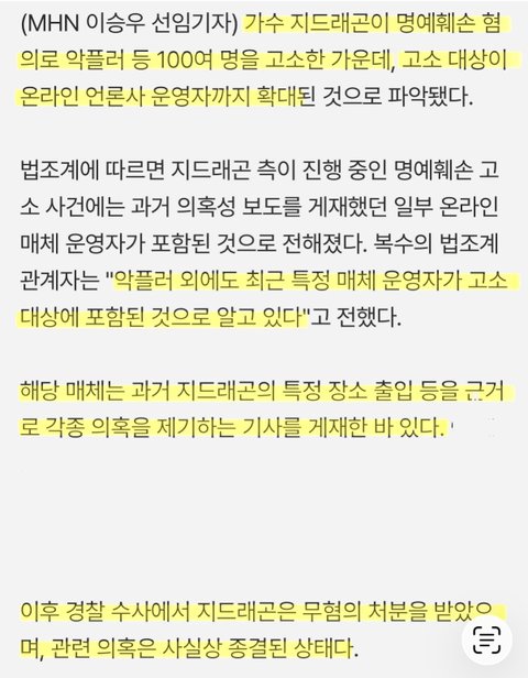 와C 지디 마약 가짜뉴스 뿌린 언론사 고소