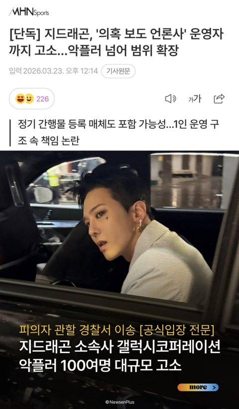 언론사 운영자까지 고소하네 ㅈㄴ 악질들이었는데 고소엔딩 ㅊㅋㅊㅋ 이번에 싹 다 뿌리를 뽑아버리자.