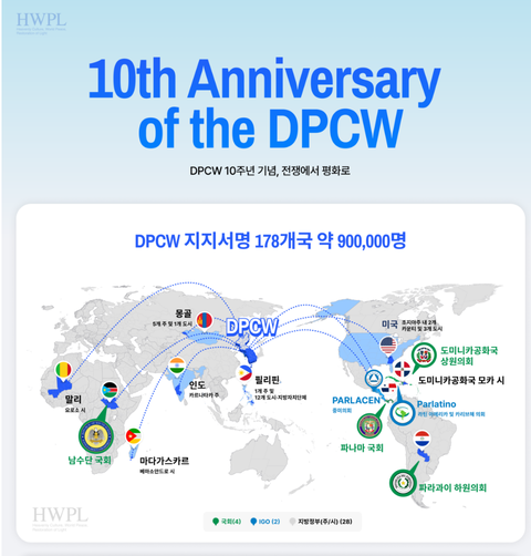 2016년 3월 14일, 전 세계가 전쟁과 분쟁으로 인한 고통을 넘어 평화를 향한 새로운 길을 모색하기 위해 ‘지구촌 전쟁종식 평화 선언문’(DPCW)을 발표한 바 있습니다.