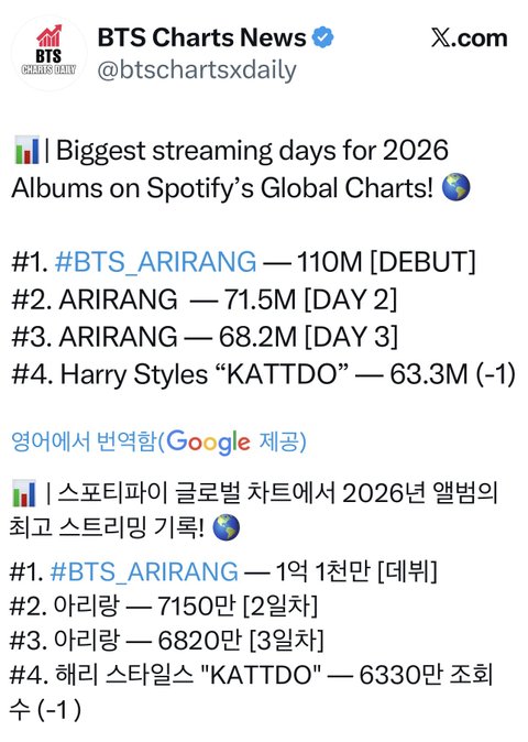 2026 발매 앨범 스트리밍 최고 기록세움