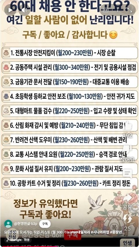 저거 다 진짜 아녀... 몇몇개는 어머니가 하셔서 아는데 경쟁률 쎄고 면접보고 들어가는데 쉽지 않아... 그리고 돈도 1/2~1/3 정도 수준임.. 하루 종일 일할때 월급일듯 싶어... 하지만 보통은 한사람이 3~4시간 일하시는 걸로 정해져있음...