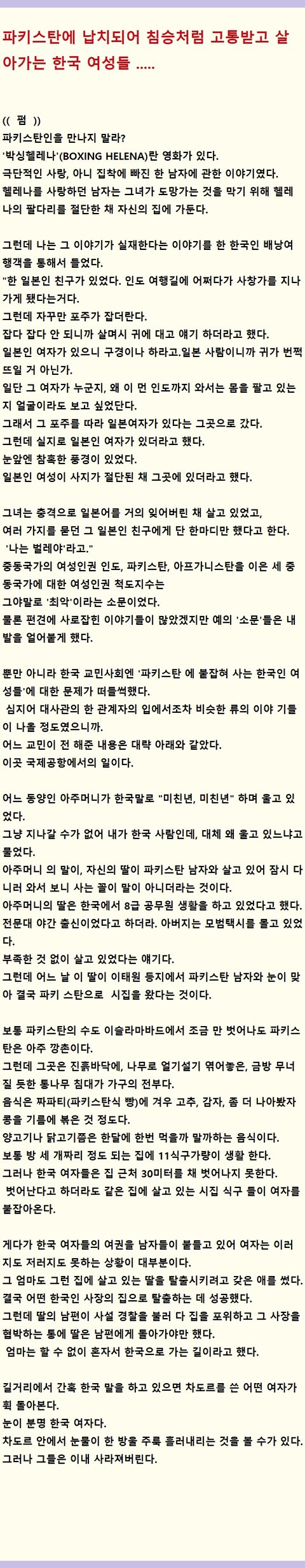 파키스탄 방글라데시에 납치되어 짐승처럼 살라가고 있는 한국 여성들 ....
