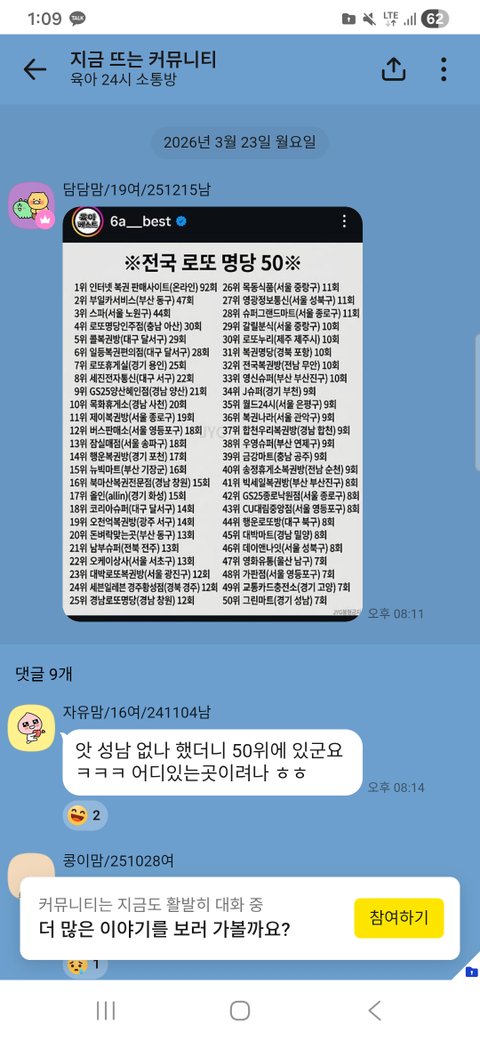 댓글 많은 톡