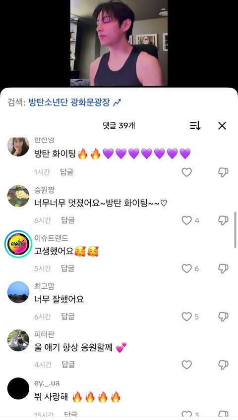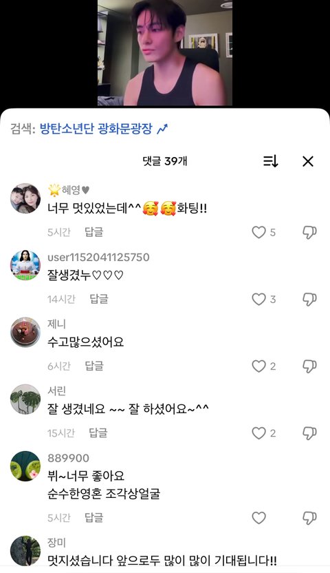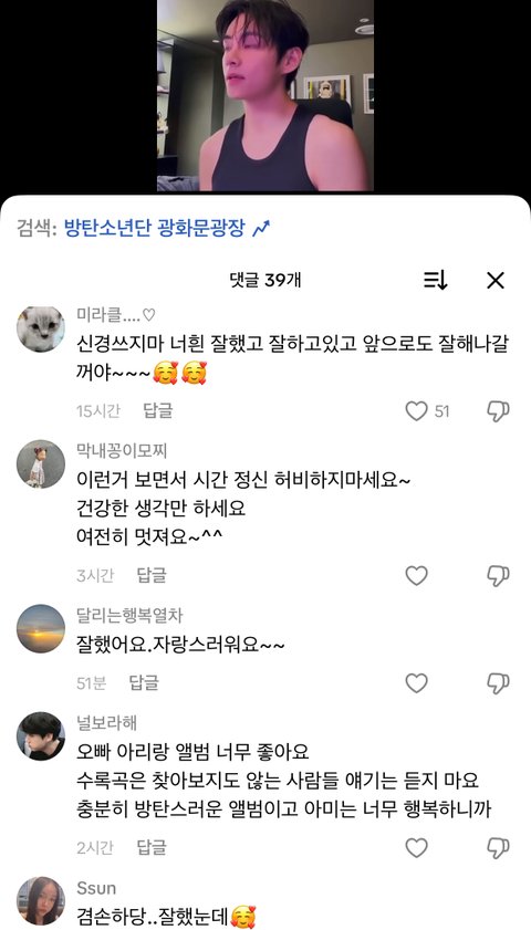 틱톡만 드가도 그냥 다 방탄영상만 댓글창 ㅇㅈㄹ임
