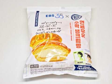 ebs 수능특강 30주년을 기념해서 연세우유와 협업해서 출시한 수학 생크림빵.