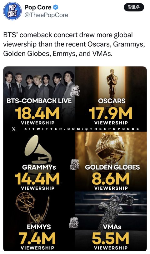 오스카 시상식 뷰수 넘음