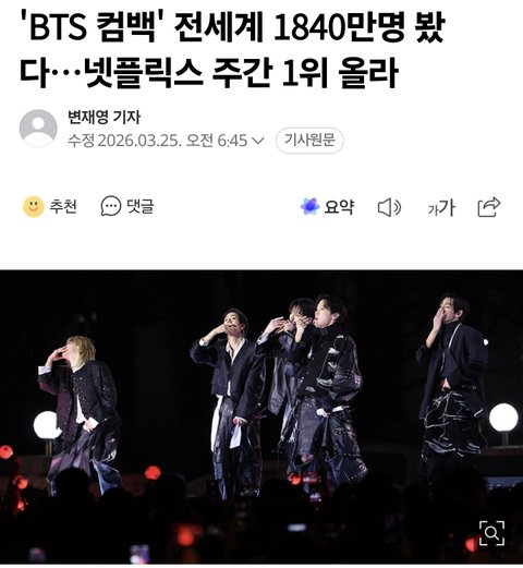 방탄 넷플 실시간 라이브시청자수 대박