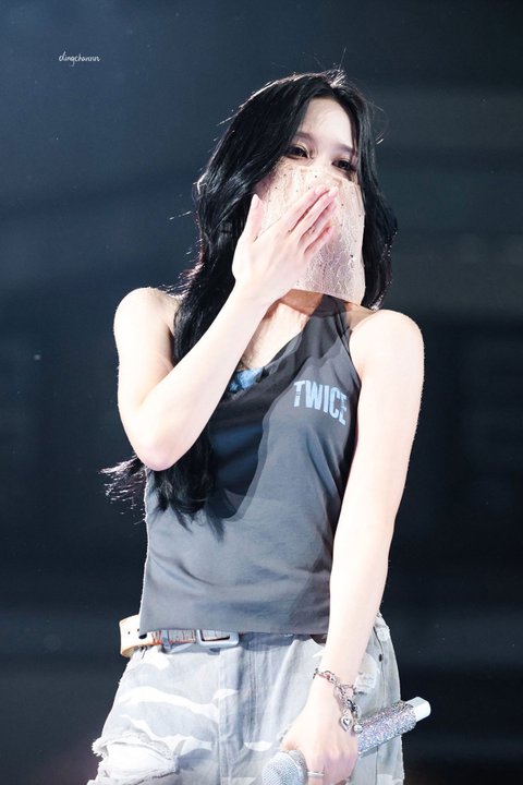 공연 전 사첵에서부터 베일로 얼굴을 가리고 나온 미나