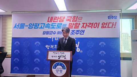 [배석환 기자]=더불어민주당 조주연 양평군수 예비후보가 서울-양평 고속도로 사업 재개와 관련해 국민의힘 소속 김선교 의원과 전진선 양평군수를 향해 “사업을 멈춰 세운 장본인들이 적반하장식 태도로 군민을 기만하고 있다”며 강도 높게 비판했다.