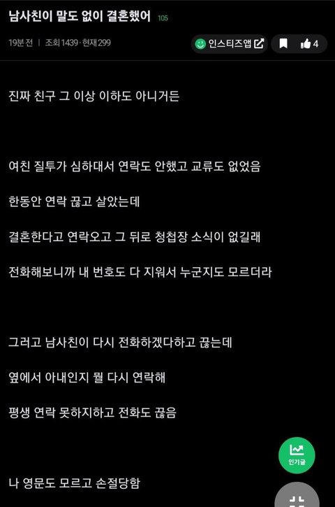 아 이건 좀 레알충격이네 진짜 결혼이란 멀까 ㅜㅜㅜ