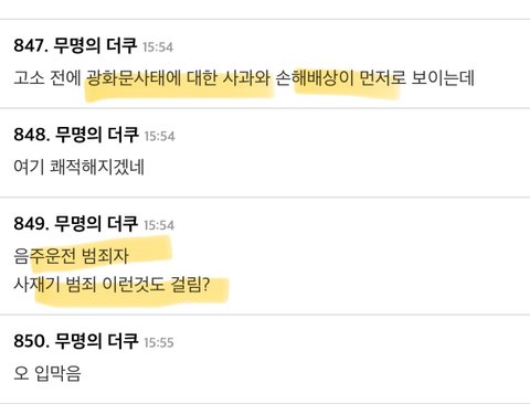 더쿠줌 흐름: 언금 타령- 정당한 비판 타령-사과하고 손해배상해-근데 이런것도 걸리나? ..