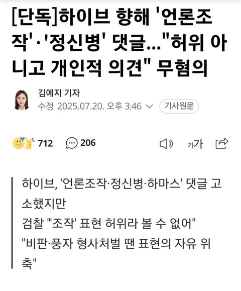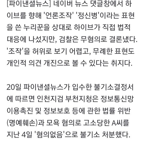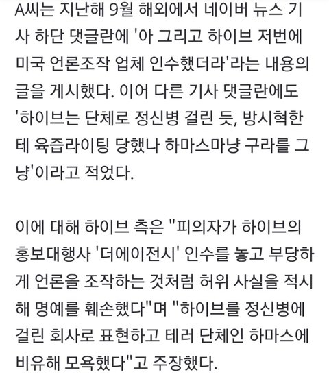 하이브 고소 무혐의 떴다는데
