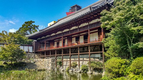 에도시대 다이묘의 저택이 있었으나 전쟁으로 소실되었고 지금은 예법을 배울 수 있는 서원이 있습니다.