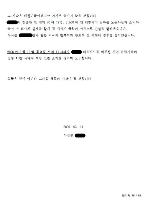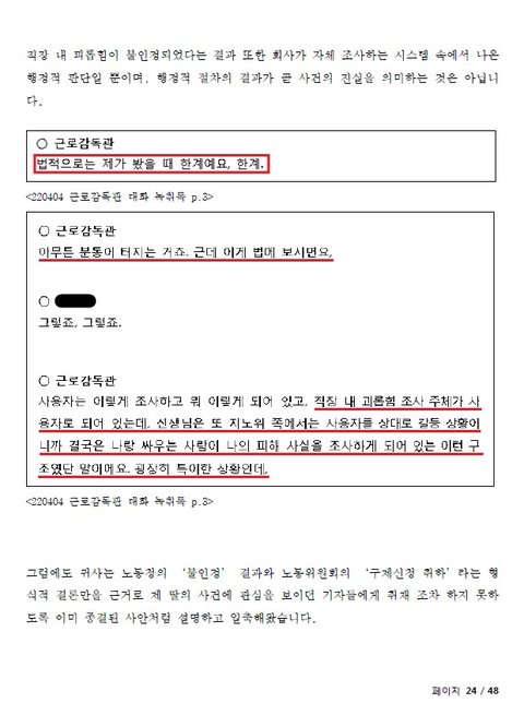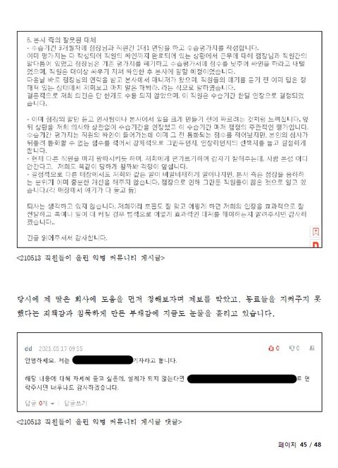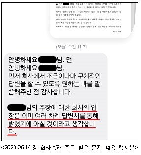 하지만 회사는 지금 이 시간까지도 단 한 번의 사과도, 설명도, 책임을 인정하는 어떠한 말도 하지 않고 있습니다.