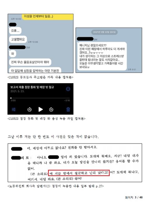 그동안 직장 문제라는 이유로 부모로서 쉽게 개입할 수도 없었고, 그저 노심초사하며 하루하루를 버텨내는 모습을 지켜볼 수밖에 없었기에 점장에게 묻고 싶은 말이 너무도 많았습니다.