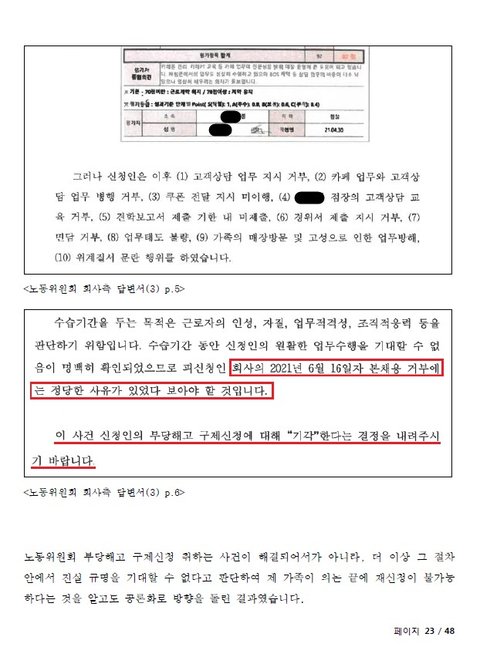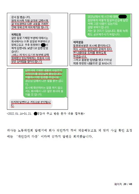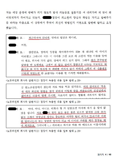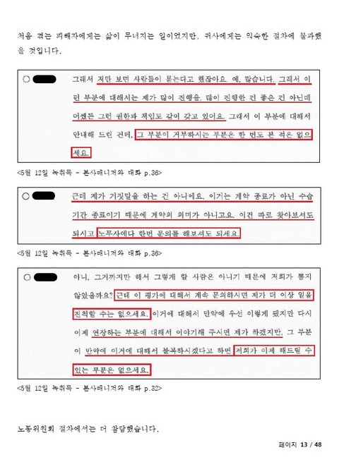 노동위원회 대응을 대비해 괴롭힘이 이어졌고