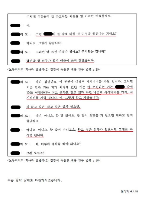 단 한 번의 책임 있는 답변도 하지 않았고, 회사의 입장은 이미 노동위원회 답변서를 통해 밝혔다는 말로 직접적인 답변을 회피했습니다.