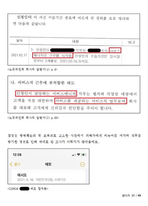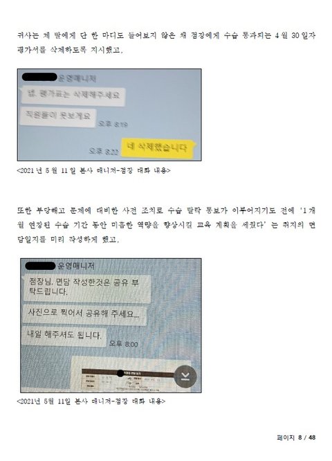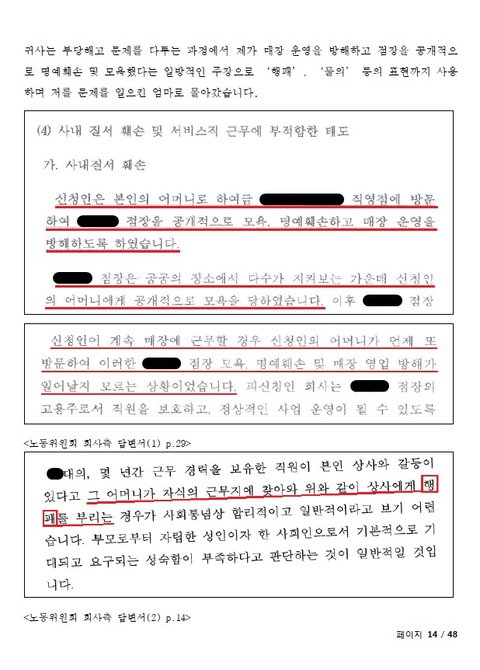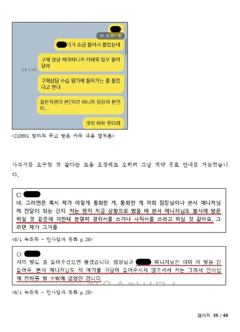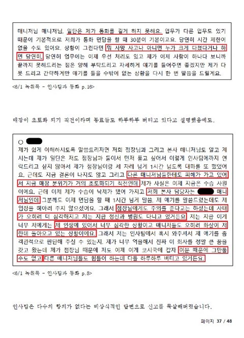 그러나 회사와 점장은 절차대로 하라는 말뿐이었습니다.