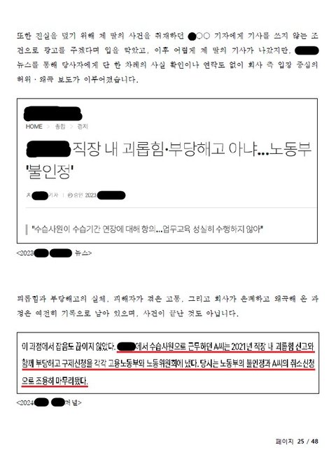 끝까지 자신들의 문제를 감추기 위해 어떻게 대응해왔는지 사실과 증거를 바탕으로 담겨 있습니다.