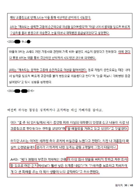 글을 올린 이후 그동안 눌러왔던 고통이 다시 되살아나 지금 제 딸의 상태가 많이 좋지 않습니다. 글을 이어갈 수 없는 상황이어서 직장 내 괴롭힘과 부당해고 피해를 겪은 당사자의 어머니인 제가 대신 이 글을 작성하게 되었습니다.