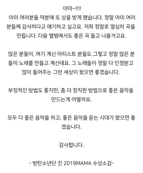 방탄 진 19년 MAMA에서 사재기 언급한 적 있음