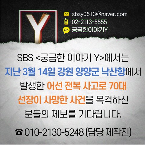 SBS는 낙산항 어선 전복으로 70대 선장이 사망한 사건의 목격자를 찾습니다.