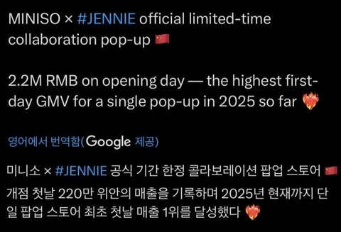 와 제니 중국 팝업 사람 봐..